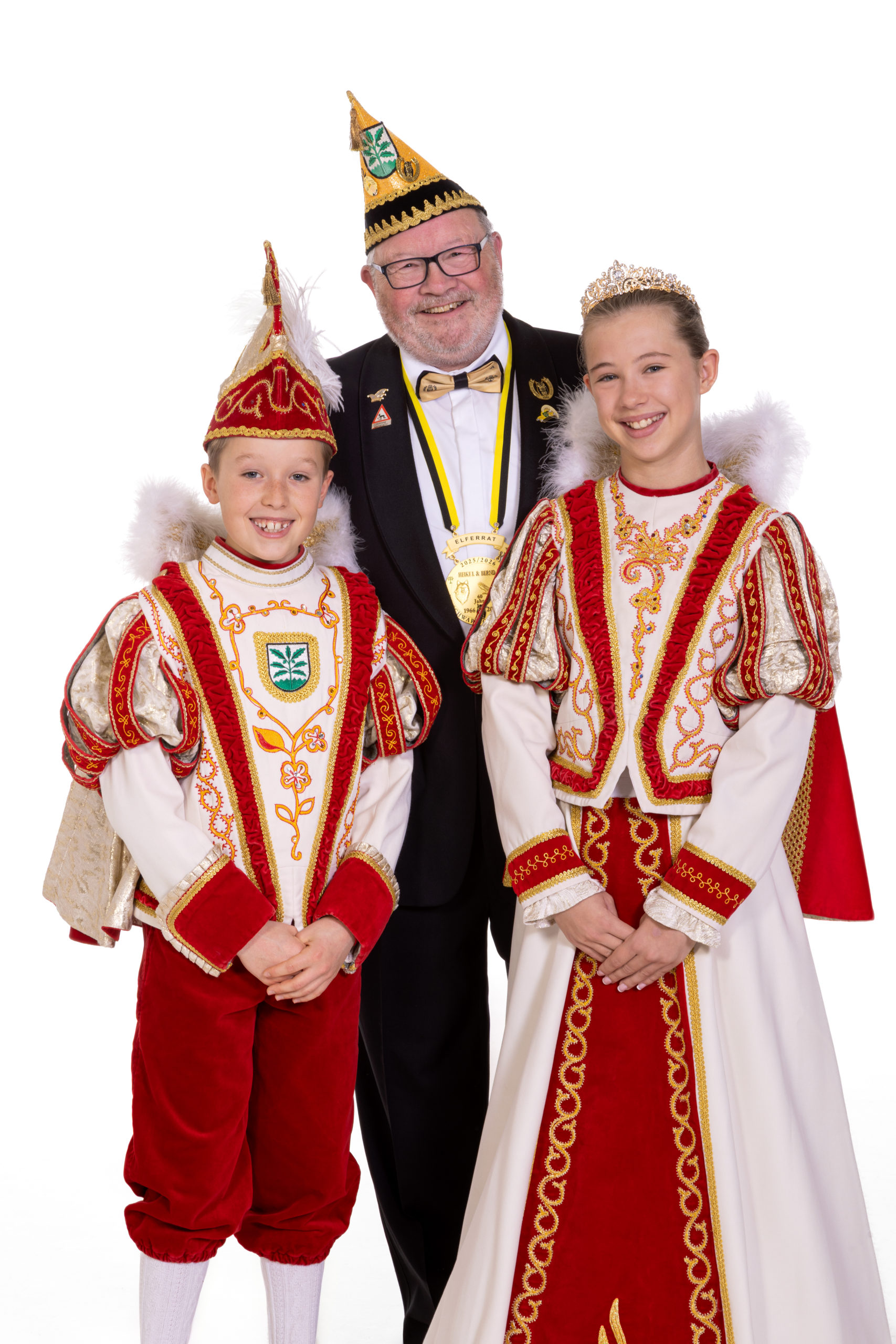 Unser aktuelles Kinderprinzenpaar Gulia I. und Raffi I. mit Udo in der Mitte.